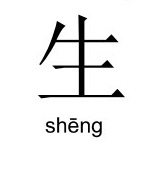 Avec un trait en haut à gauche : La Vie : Sheng :Un mouvement descend du ciel.